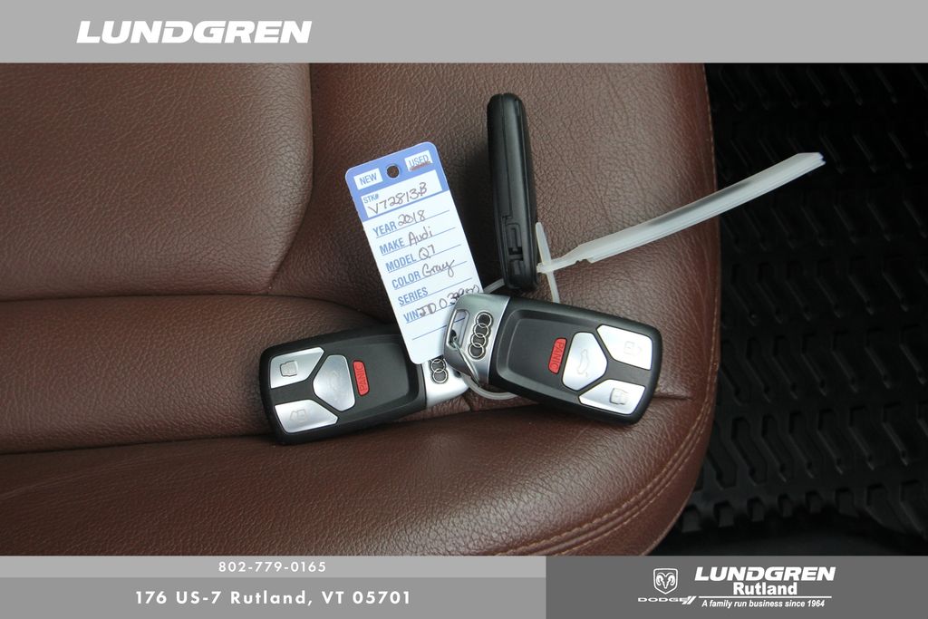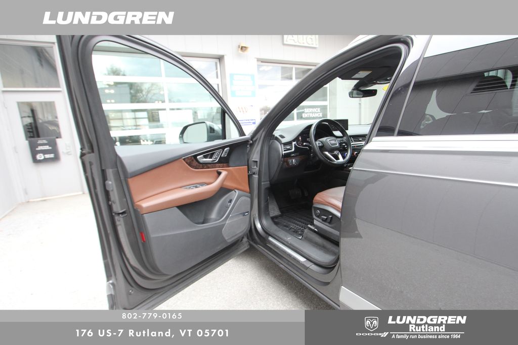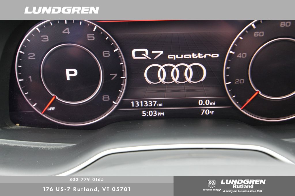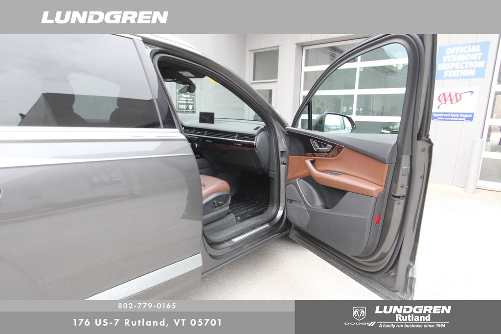 Full financing options available for all levels of credit. We want your trade in! We are Carfax vehicle history certified, buy with confidence. Q7 3.0T Premium Plus quattro, 130k service done, 3-Spoke Multifunction Steering Wheel w/Paddles, 3D Bose Surround Sound System, Audi Connect CARE, Audi Connect PRIME & PLUS, Audi MMI Navigation Plus Package, Audi MMI Navigation Plus w/MMI Touch, Audi Side Assist w/Pre Sense Rear, Audi Smartphone Interface, Audi Virtual Cockpit, Black Rubber All-Weather Floor Mats (Set of 4), Cold Weather Package, Electric Tilt/Telescopic Steering Column w/Memory, Exterior Parking Camera Rear, Full LED Headlights, Heated Auto-Dimming Power Folding Exterior Mirrors, Heated door mirrors, Heated front seats, Heated Rear Seats, Leather Seating Surfaces, LED Interior Lighting Package, Power door mirrors, Power Liftgate, Premium Plus Package, Remote keyless entry, Sold and Serviced by Audi Rutland, Topview Camera System, Vision Package, Wheels: 19" 5-V-Spoke Design. Clean CARFAX. 2018 Q7 Samurai Gray Metallic Audi 3.0T Premium Plus quattro