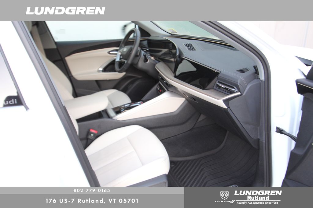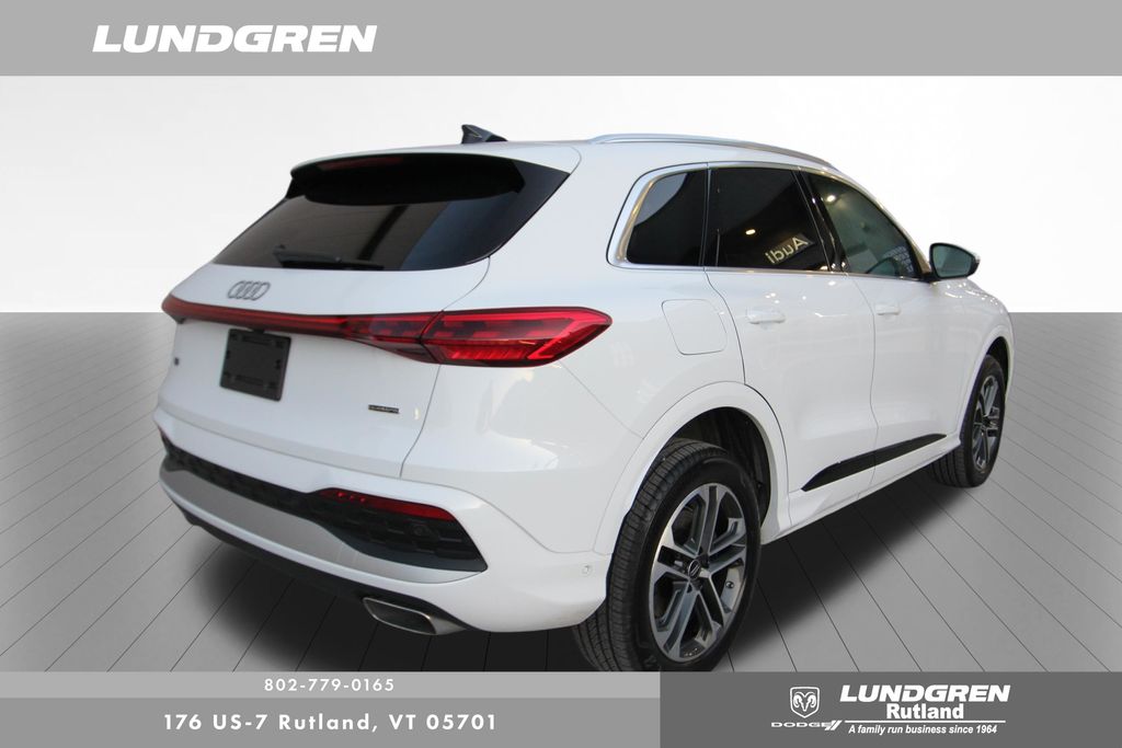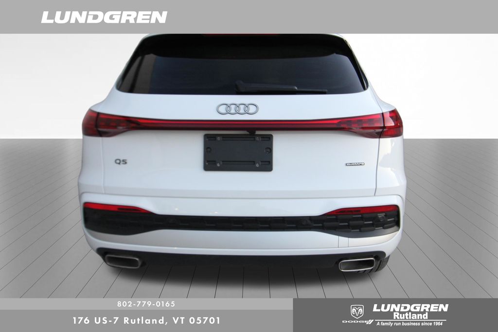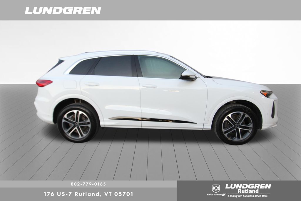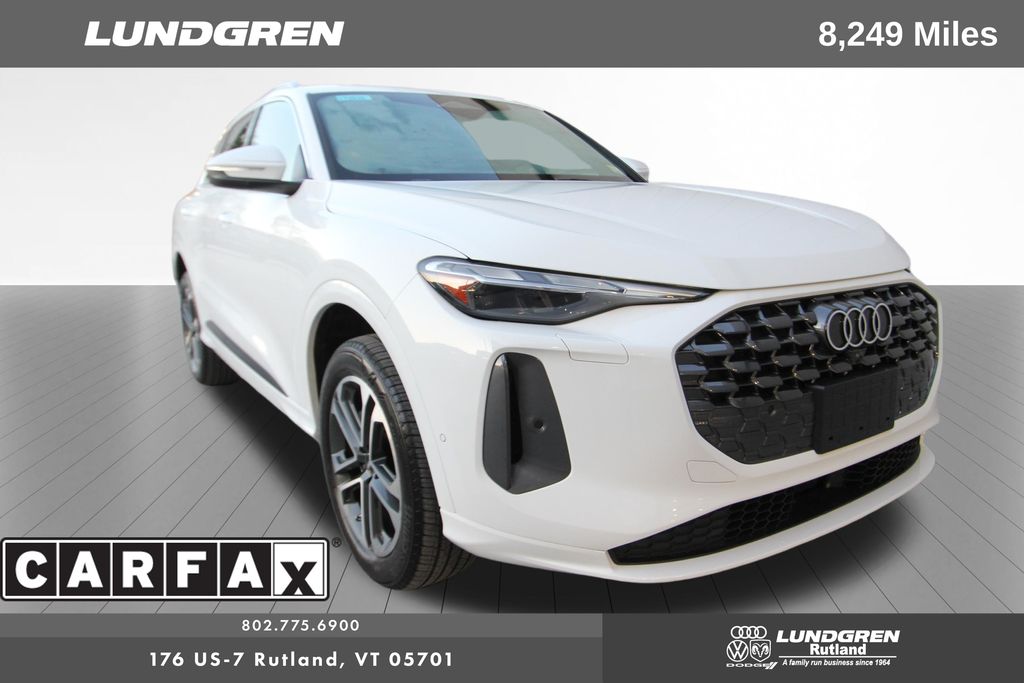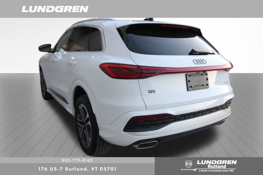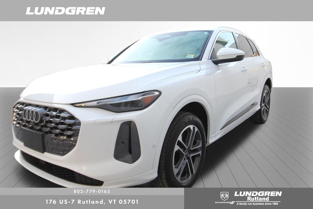 Here is one of our previous loaner vehicles provided to our Audi service customers. This vehicle has been meticulously maintained by our staff and includes the remaining balance of Audis 4yr or 50,000 mile warranty. Q5 2.0T Premium quattro, 1 Owner, ABS brakes, Auto tilt-away steering wheel, Compass, Convenience Package, Electronic Stability Control, Exterior Parking Camera Rear, Front dual zone A/C, Heated door mirrors, Heated Front Bucket Seats, Heated front seats, Heated Steering Wheel, Illuminated entry, Leather Seating Surfaces, Low tire pressure warning, LUNDGREN HOME GROWN VEHICLE, Navigation System, Power Liftgate, Remainder of factory warranty, Remote keyless entry, Sold and Serviced by Audi Rutland, Tilt steering wheel, Top View Camera System, Traction control, Wheels: 19" 5-Double-Spoke Design. Clean CARFAX. CARFAX One-Owner. 2025 Q5 Arkona White Audi 2.0T Premium quattro