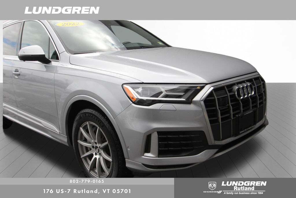 Full financing options available for all levels of credit. We want your trade in! We are Carfax vehicle history certified, buy with confidence. Q7 55 Premium Plus quattro, 1 Owner, 3rd row seats: bench, 4-Zone Automatic Climate Control, Adaptive Cruise Assist w/Lane Guidance, Audi Phone Box w/Wireless Charging, Audi smartphone interface (Apple CarPlay/Android Auto), Auto High-beam Headlights, Auto-dimming door mirrors, Auto-dimming Rear-View mirror, Bang & Olufsen 3D Premium Sound System, Contour/Ambient LED Interior Lighting Package, Convenience Package, Driver & Passenger Front Seats w/Ventilation, Executive Package, Exterior Parking Camera Rear, Heated door mirrors, Heated front seats, Heated Rear Seats, Heated Steering Wheel, Illuminated Door Sills, Leather Seating Surfaces, Navigation system: Audi MMI Navigation plus with Touch Response, Power Liftgate, Power moonroof: Panoramic, Premium Plus Package, Rear Door/Side Windows & Tailgate Sunshades, Reclining 3rd row seat, Remote keyless entry, Telescoping steering wheel, Tilt steering wheel, Topview Camera System, Wheels: 20" 5-Spoke Turbine-Design. CARFAX One-Owner. 2022 Q7 Florett Silver Metallic Audi 55 Premium Plus quattro