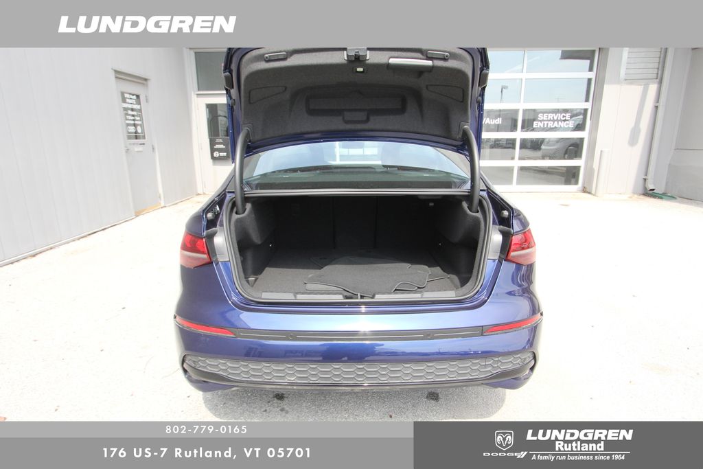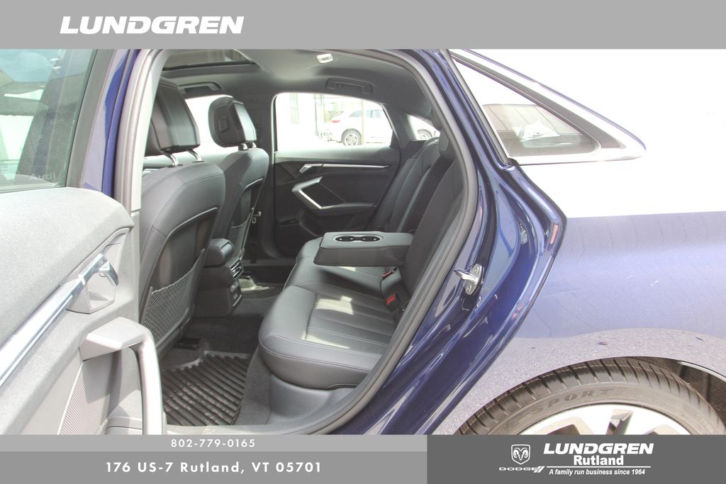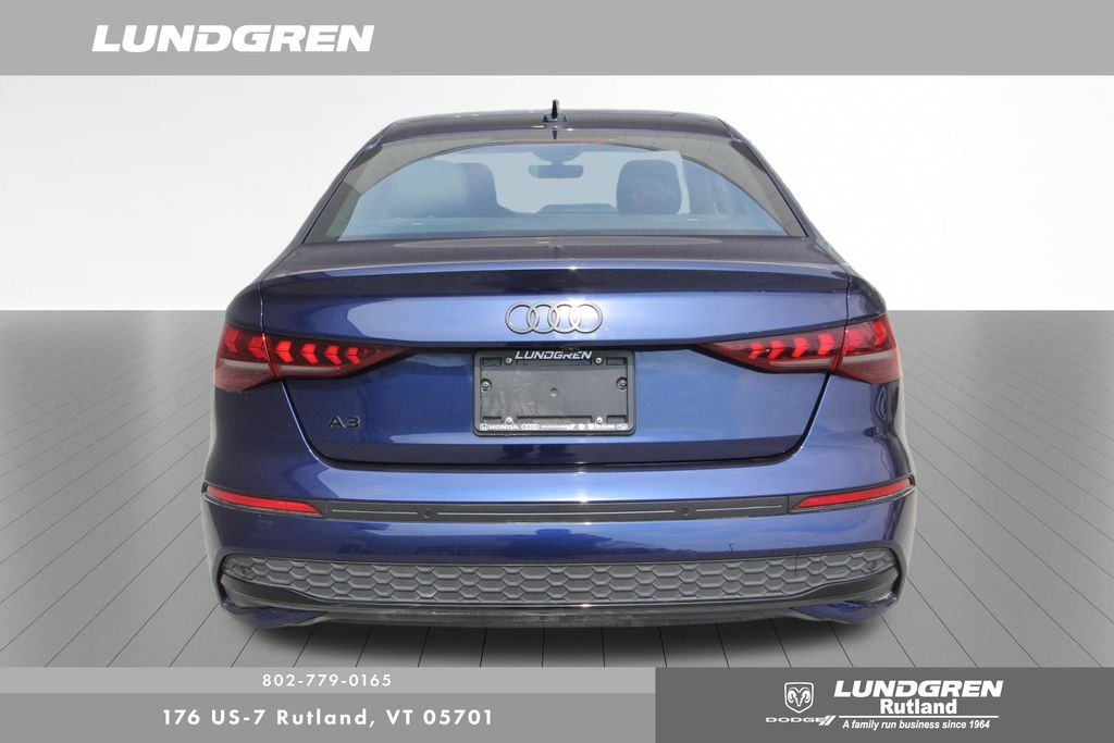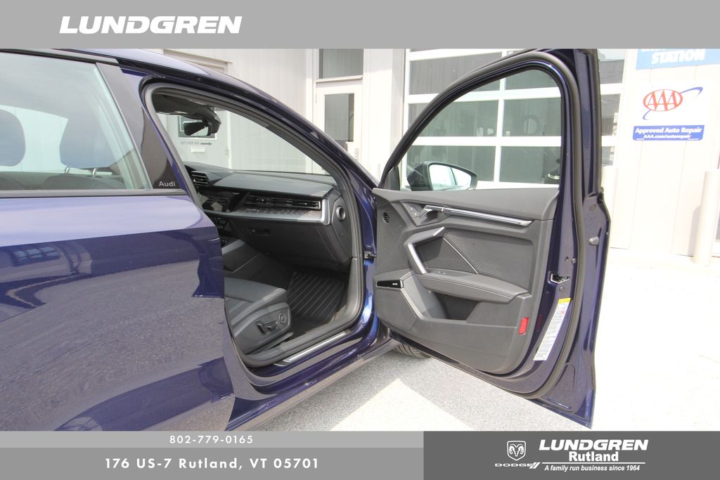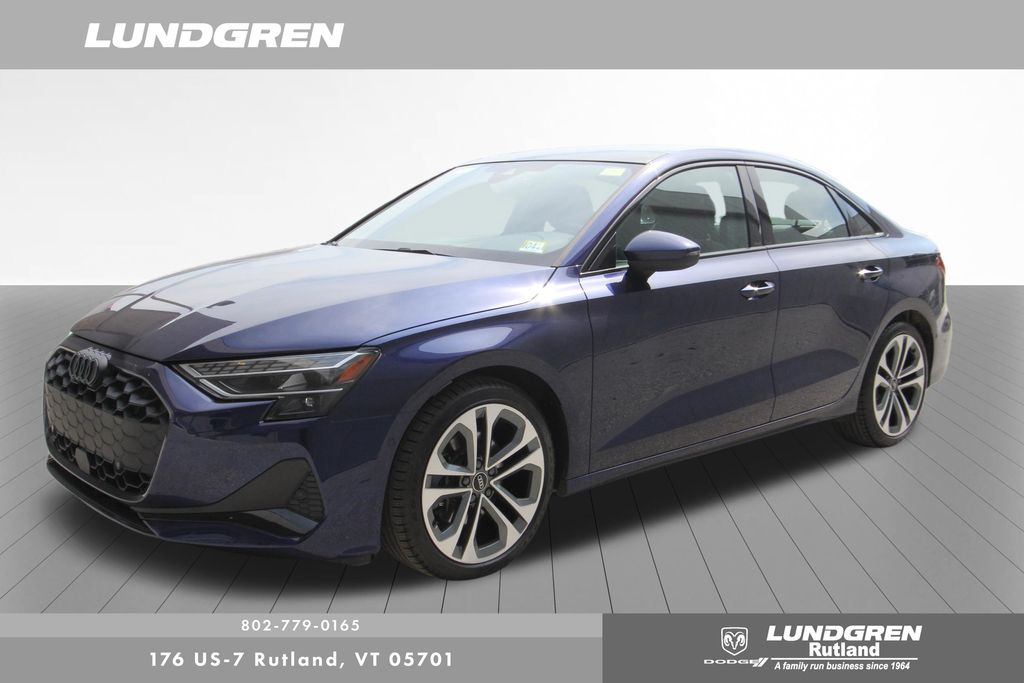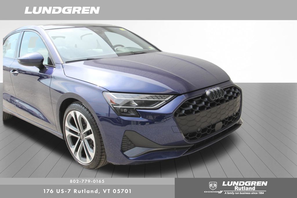 Full financing options available for all levels of credit. We want your trade in! We are Carfax vehicle history certified, buy with confidence. A3 40 Premium Plus quattro, 1 Owner, 6 Speaker Sound System, Adaptive Cruise Assist, Adaptive Cruise Assist with Lane Guidance, Anthracite Audi Rings, Audi Advanced Key, Auto High-beam Headlights, Auto-Dimming Power Folding Exterior Mirrors, Auto-Dimming Rear-View Mirror, Black Exterior Trim, Black Optic Package, Convenience Package, Exterior Parking Camera Rear, Hands-on Detection Steering Wheel, Heated door mirrors, Heated front seats, HomeLink Garage Door Opener, Leather Seating Surfaces, LED Interior Lighting Plus Package, LUNDGREN HOME GROWN VEHICLE, Memory For Driver's Seat, Power moonroof, Premium Plus Package, Radio: MMI with 10.1" Touchscreen Display, Remainder of factory warranty, Remote keyless entry, SiriusXM with 360L, Sold and Serviced by Audi Rutland, SONOS Sound System, Sport Suspension (-15 Mm), Telescoping steering wheel, Tilt steering wheel, Wheels: 18" 5-Double-Spoke Design, Wireless Phone Charging Pad. Clean CARFAX. CARFAX One-Owner. 2025 A3 Navarra Blue Metallic Audi 40 Premium Plus quattro